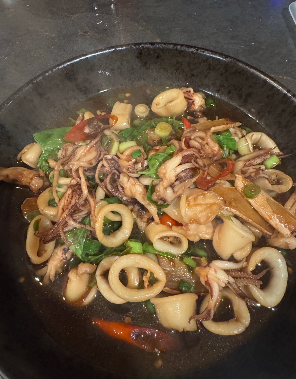 Using my tried and truth 3 Cup Chicken recipe to make a seafood version with squid.